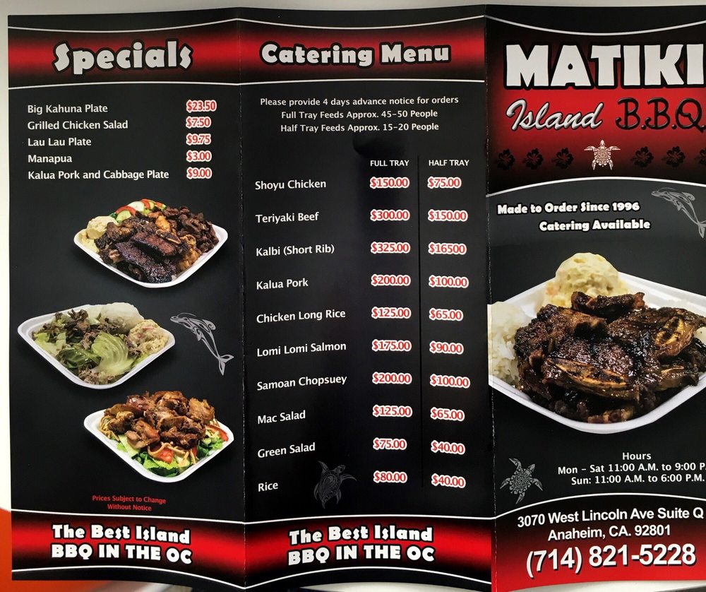 Welcome to Matiki Island BBQ, where the flavors of the islands come to life in Anaheim, CA. This casual eatery offers a blend of Hawaiian and BBQ cuisine with options for delivery, takeout, and reservations. With limited vegetarian choices and a focus on meat-centric dishes, Matiki Island BBQ caters to meat lovers looking for a satisfying meal.